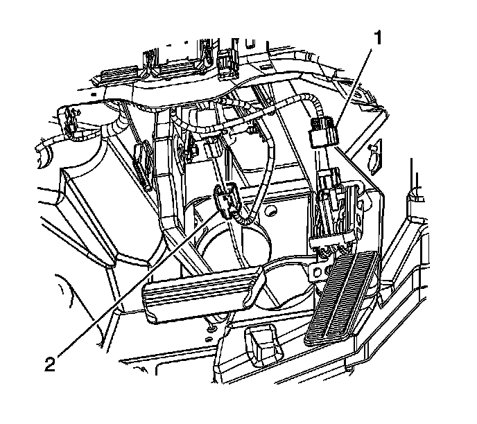 2. Disconnect the accelerator pedal position sensor (1) and brake apply sensor (2).