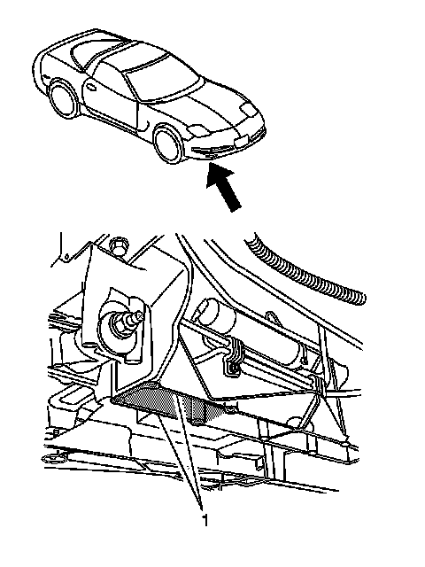 - Make sure the jack lift pad spans at least 2 suspension crossmember ribs (1).