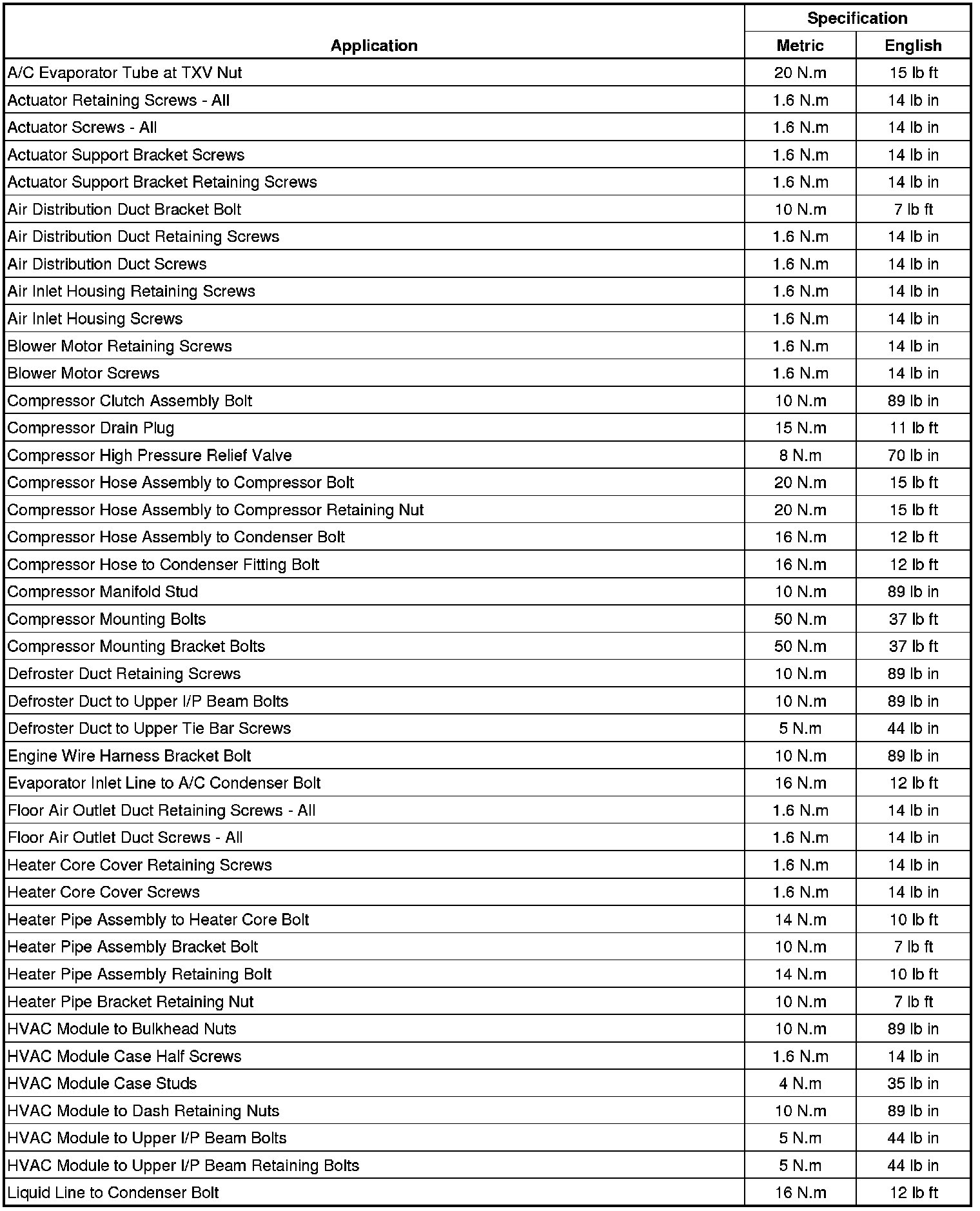 Fastener Tightening Specifications