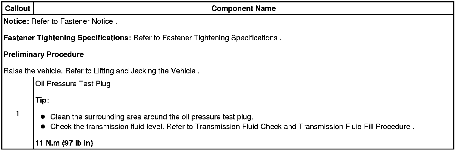 Transmission Pressure Test Port: Service and Repair