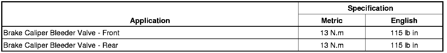 Brake Component Specifications