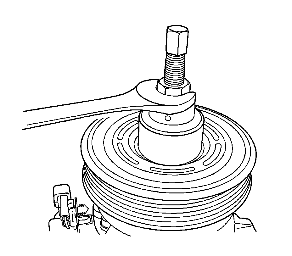 8. Using GE-47850 with J 25031-A, remove the compressor pulley from the compressor.
