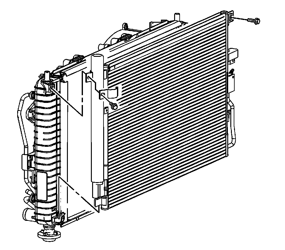 4. Install the bolts to retain the top of the condenser to the radiator.