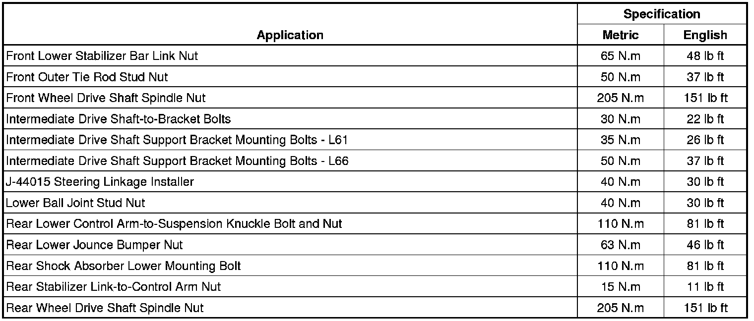 Fastener Tightening Specifications