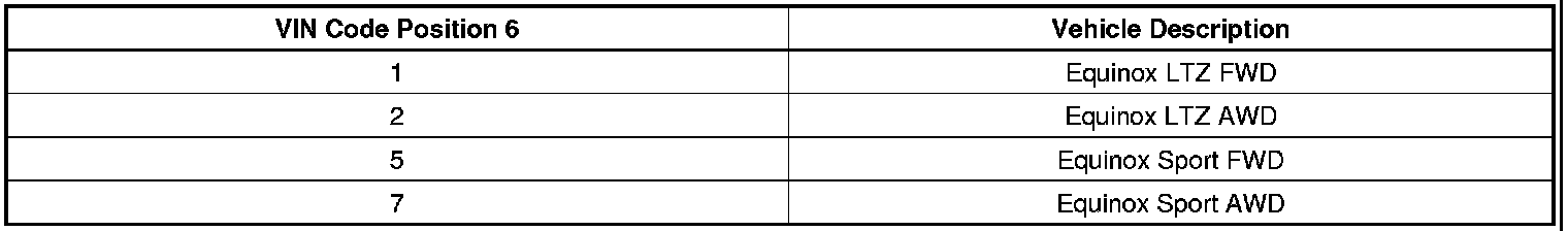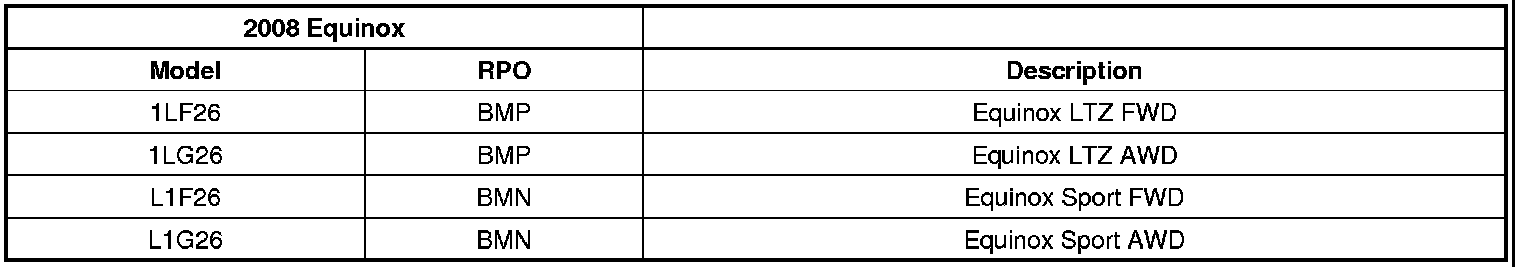 The 2008 model year production of the Chevrolet Equinox LTZ and Sport models began with the following VIN code assignments: