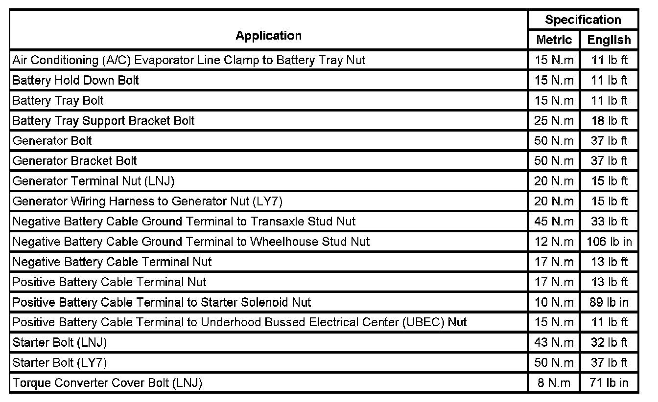 Starting and Charging: Specifications