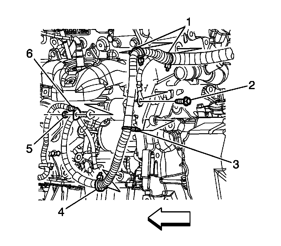 5. Remove the generator wiring lead (6) from the starter solenoid.