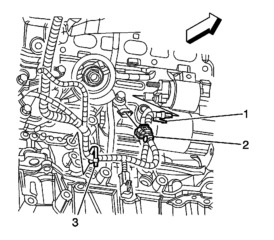 7. Disconnect the engine wiring harness electrical connector (1) from the starter.