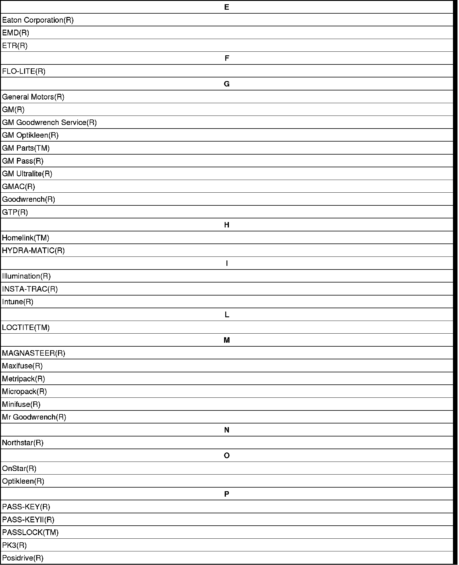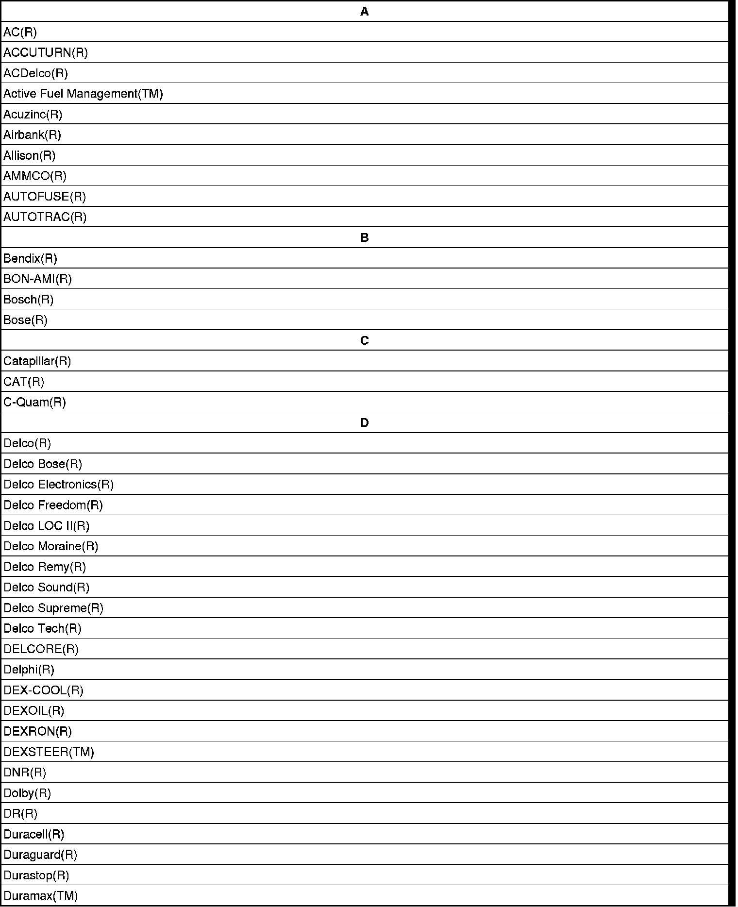 Listed below are Registered Trademarks ((R)) or Non-Registered Trademarks ((TM)) which may appear in this service manual.