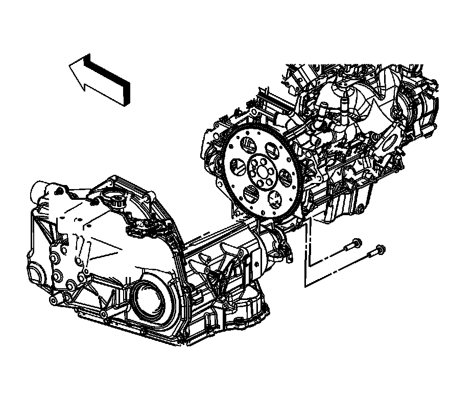 10. If the vehicle is equipped with a automatic transaxle, remove the 4 lower transaxle bolts.