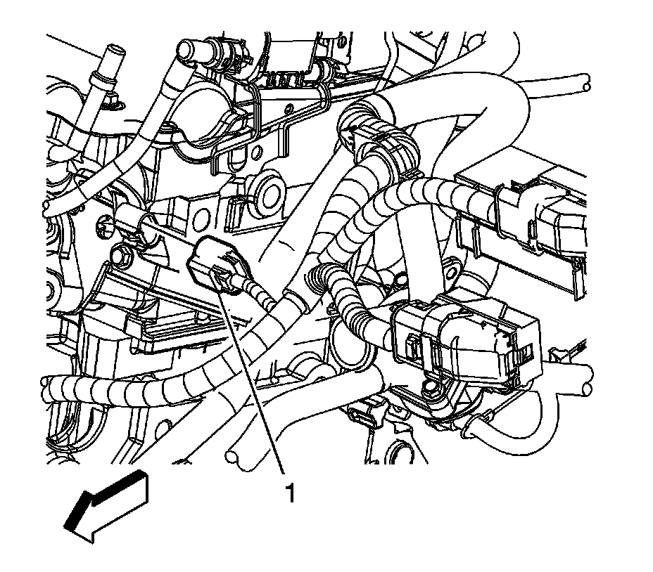 2. Disconnect the engine wiring harness electrical connector (1) from the intake camshaft position (CMP) sensor.