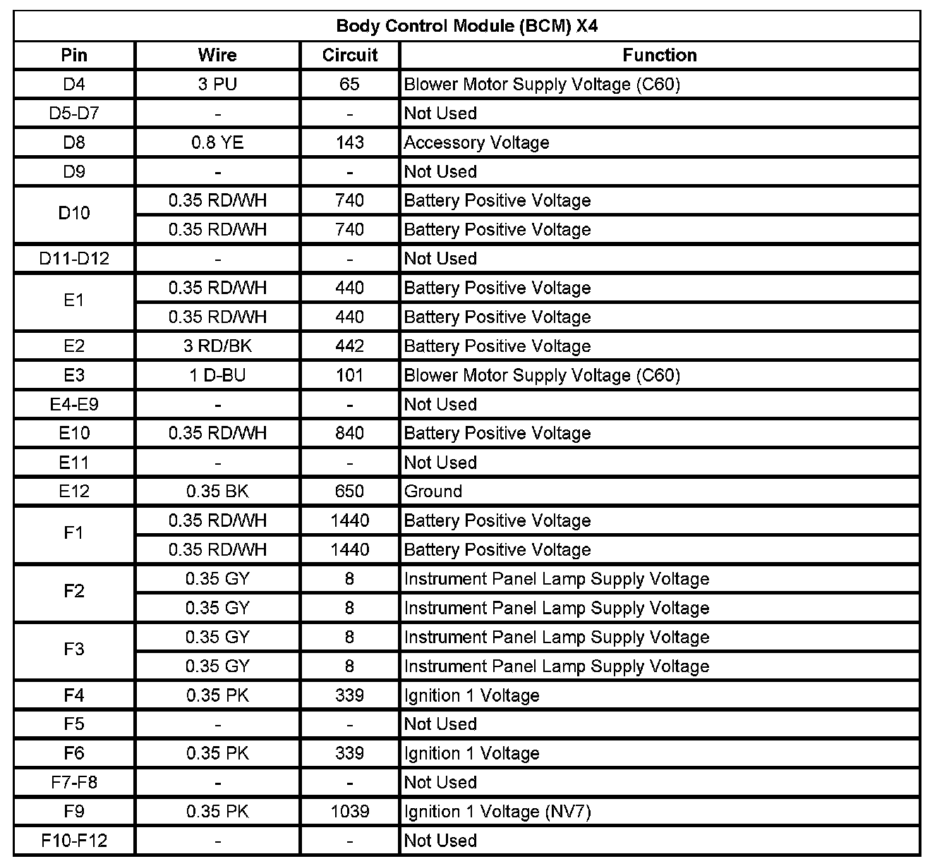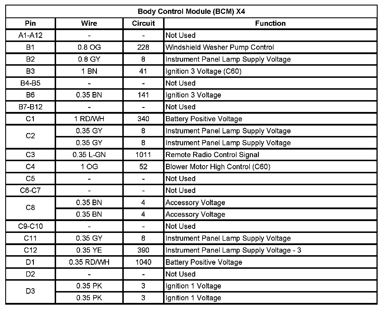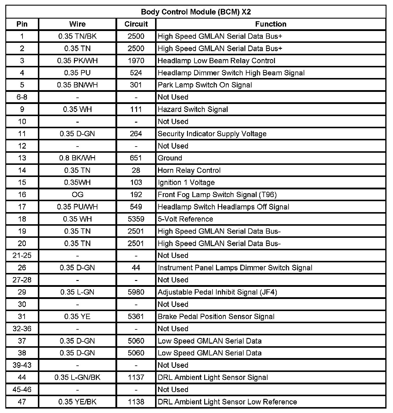Body Control Module (BCM) X2 (Pin 1 To 47):