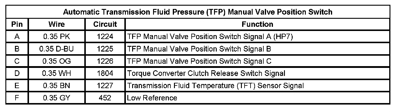Automatic Transmission Fluid Pressure (TFP) Manual Valve Position Switch