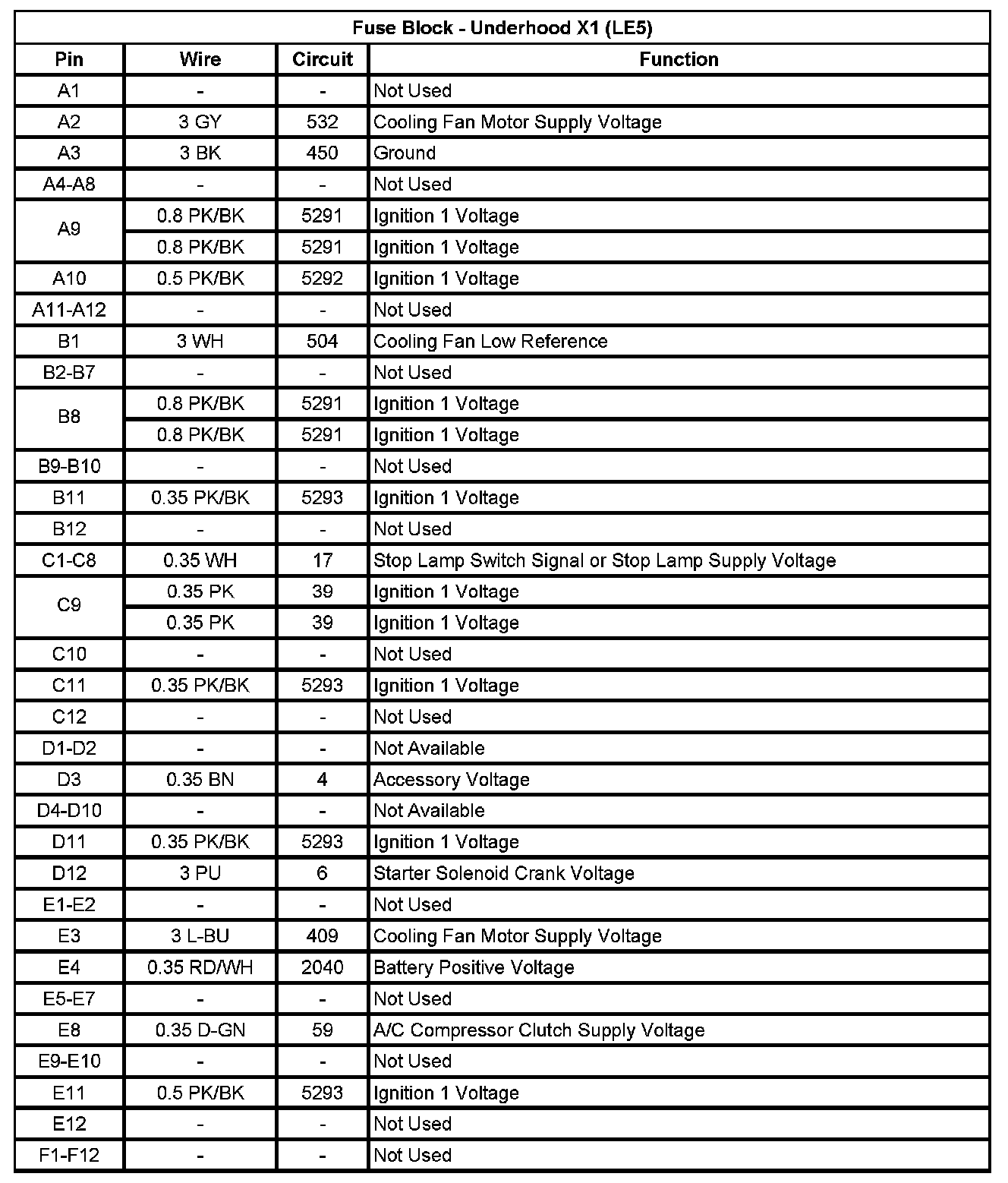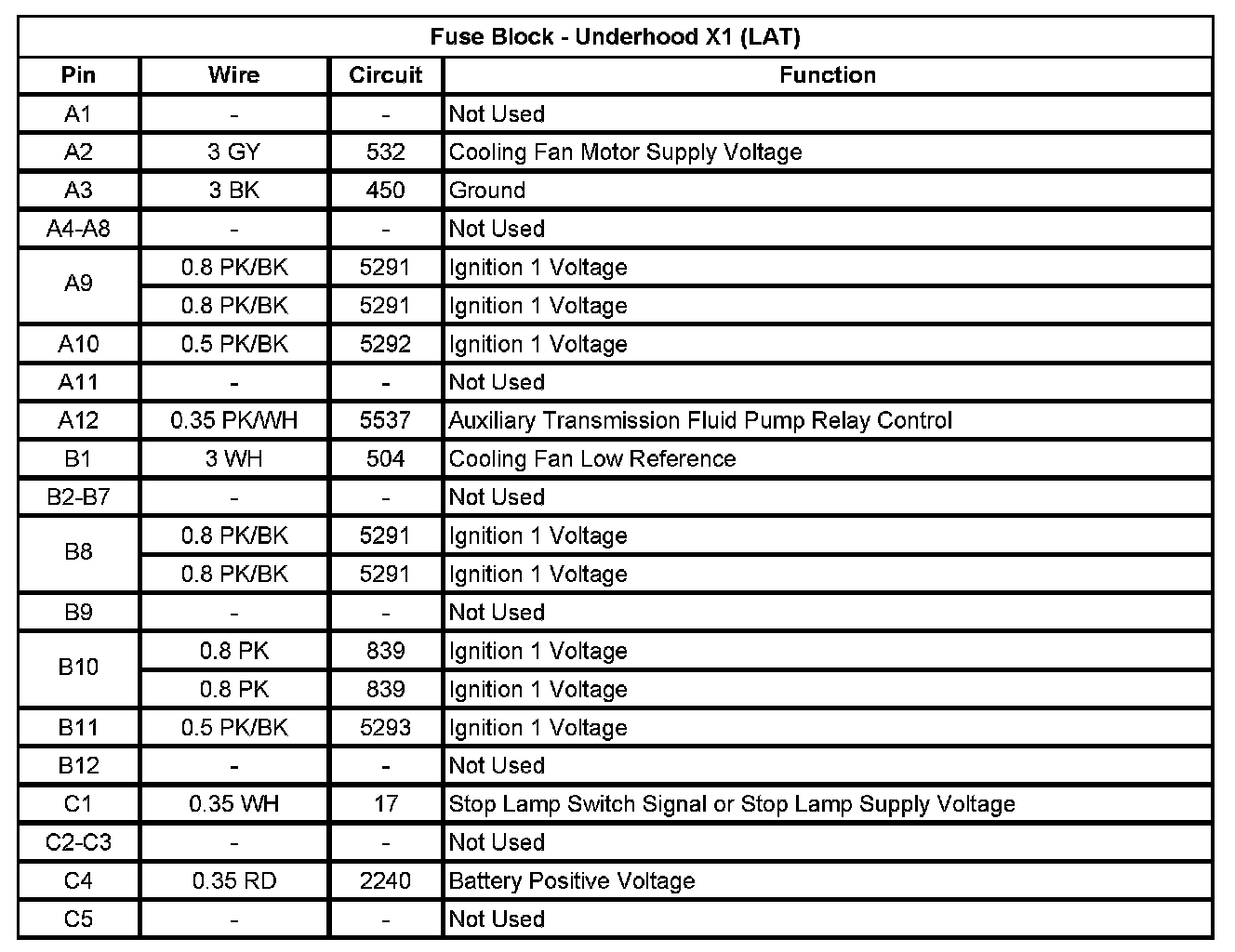 Fuse Block - Underhood X1 (LAT) (Pin A1 To C5):