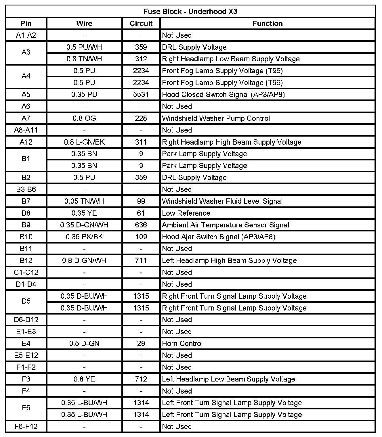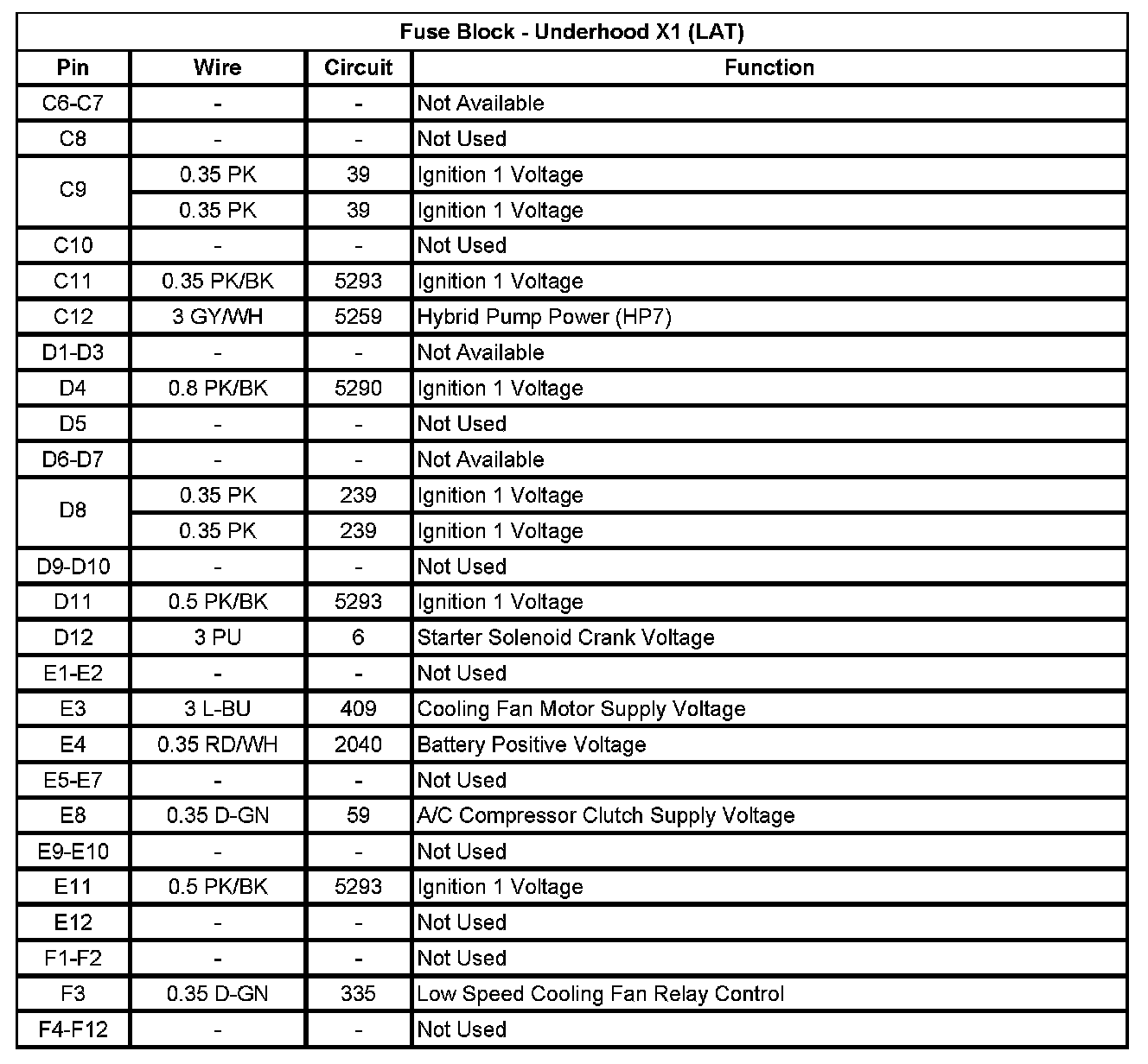 Fuse Block - Underhood X2 (HP7) (Pin C12 To F12):