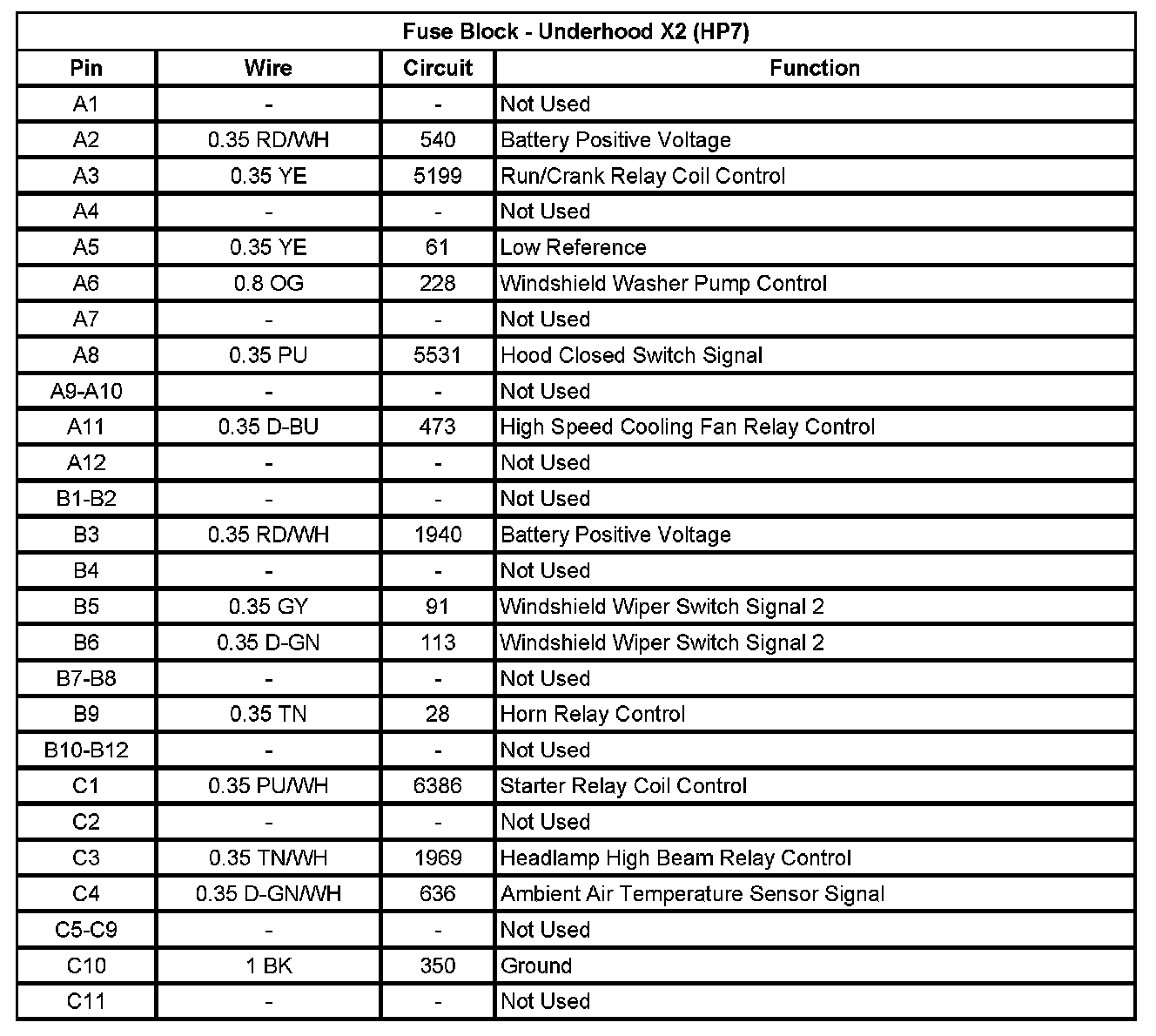 Fuse Block - Underhood X2 (HP7) (Pin A1 To C11):