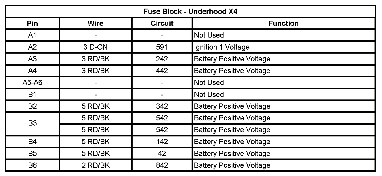 Fuse Block - Underhood X1 (LAT) (Pin C6 To F12):