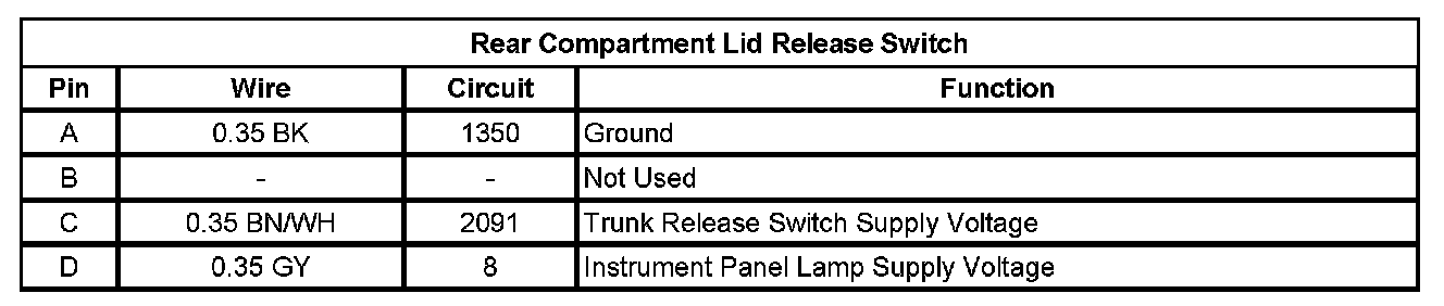 Rear Compartment Lid Release Switch