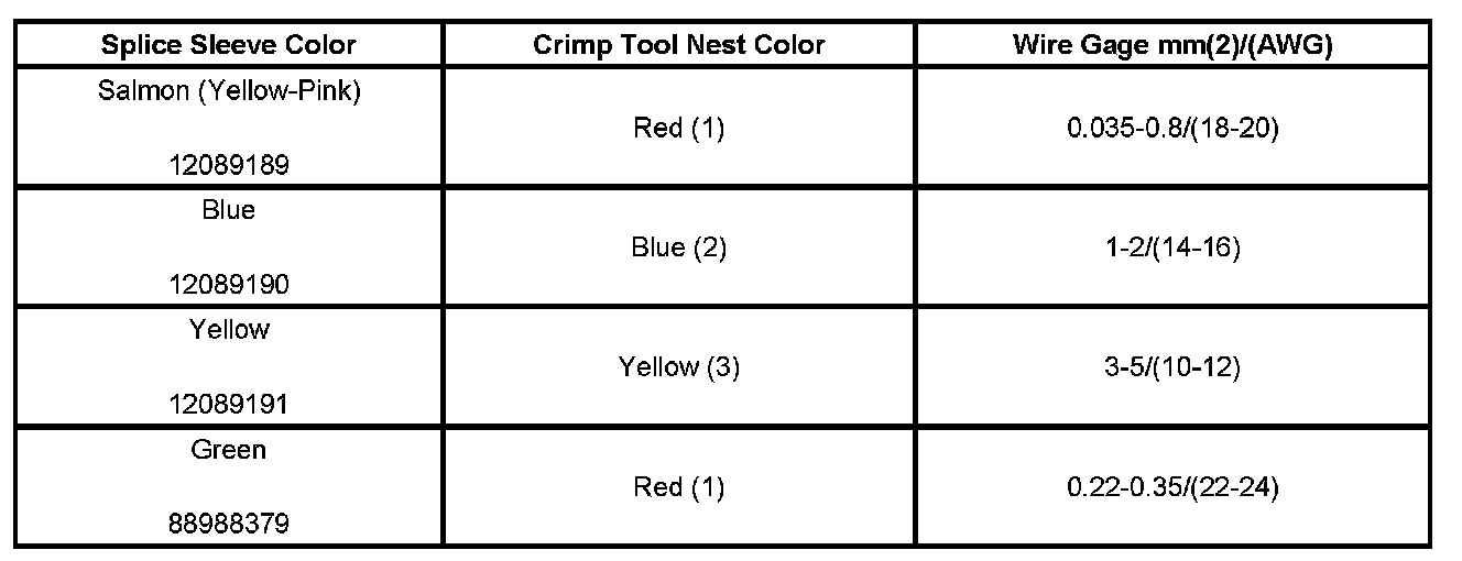 6. Select the proper DuraSeal splice sleeve according to the wire size. Refer to the above table at the beginning of the repair procedure for the color coding of the DuraSeal splice sleeves and the crimp tool nests.