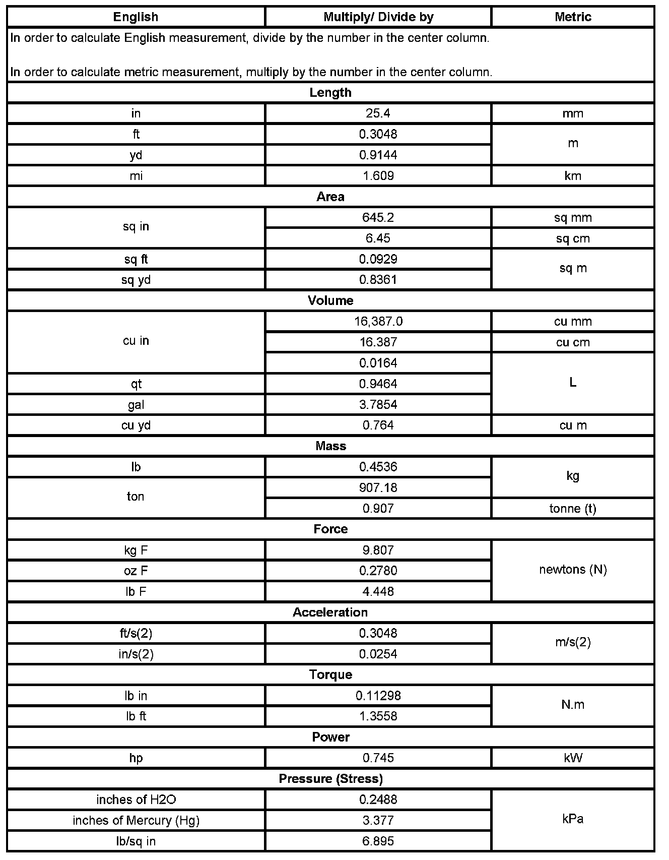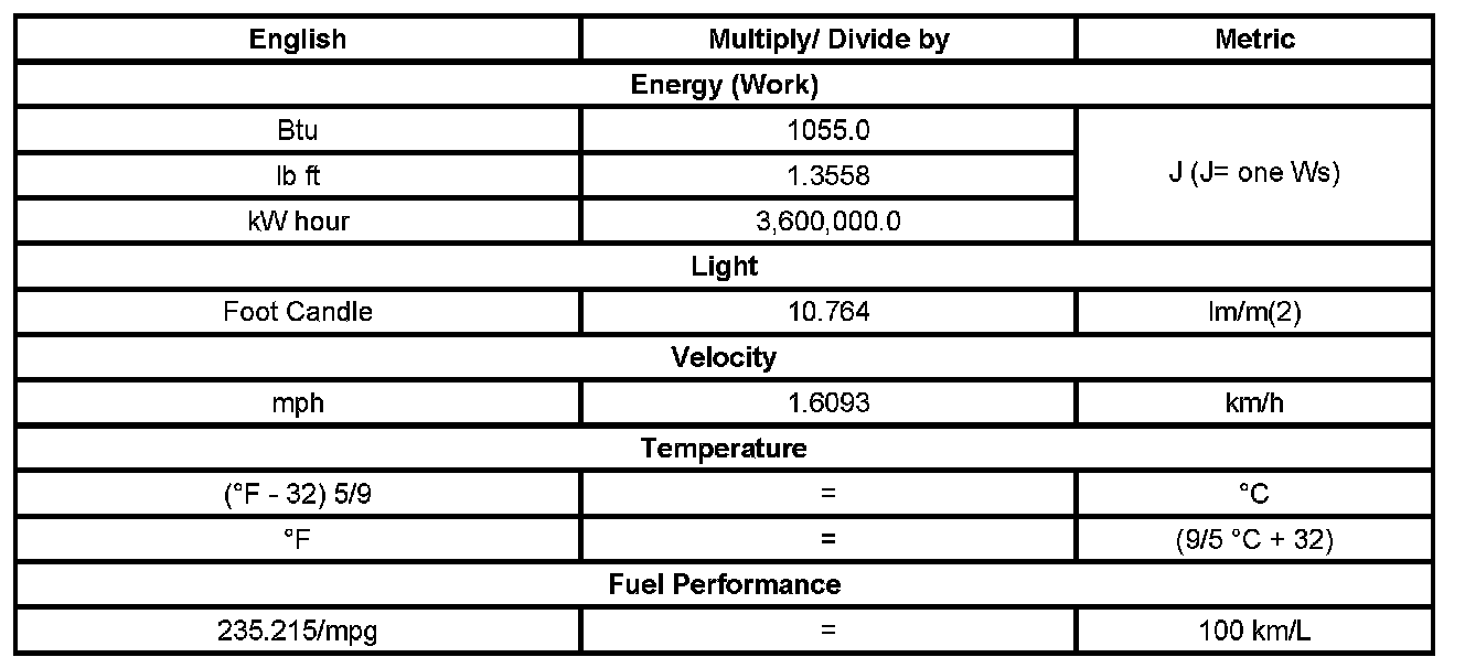 US English/Metric Conversion