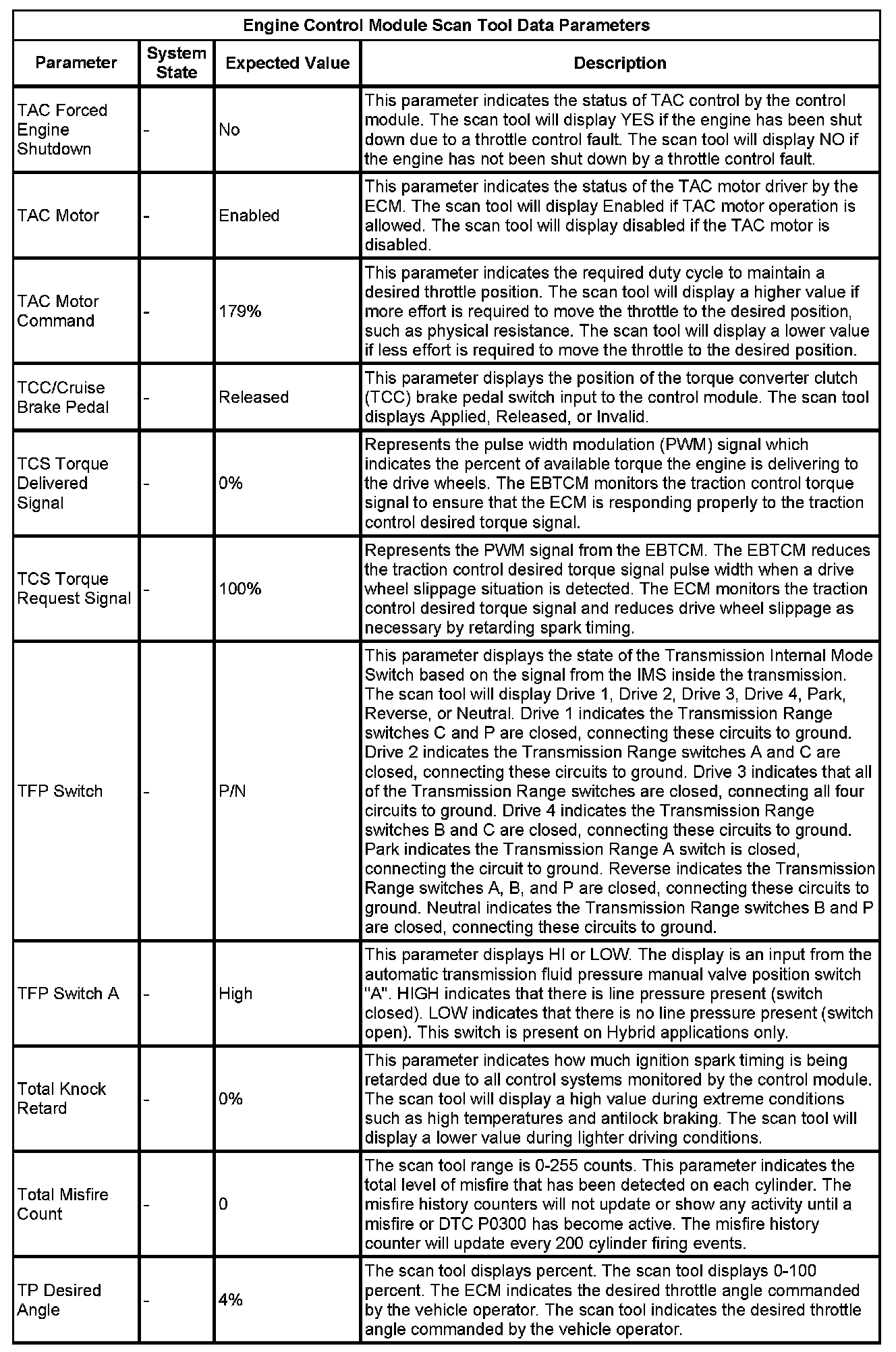 The Engine Scan Tool Data List contains all engine related parameters that are available on the scan tool. The list is arranged in alphabetical order.