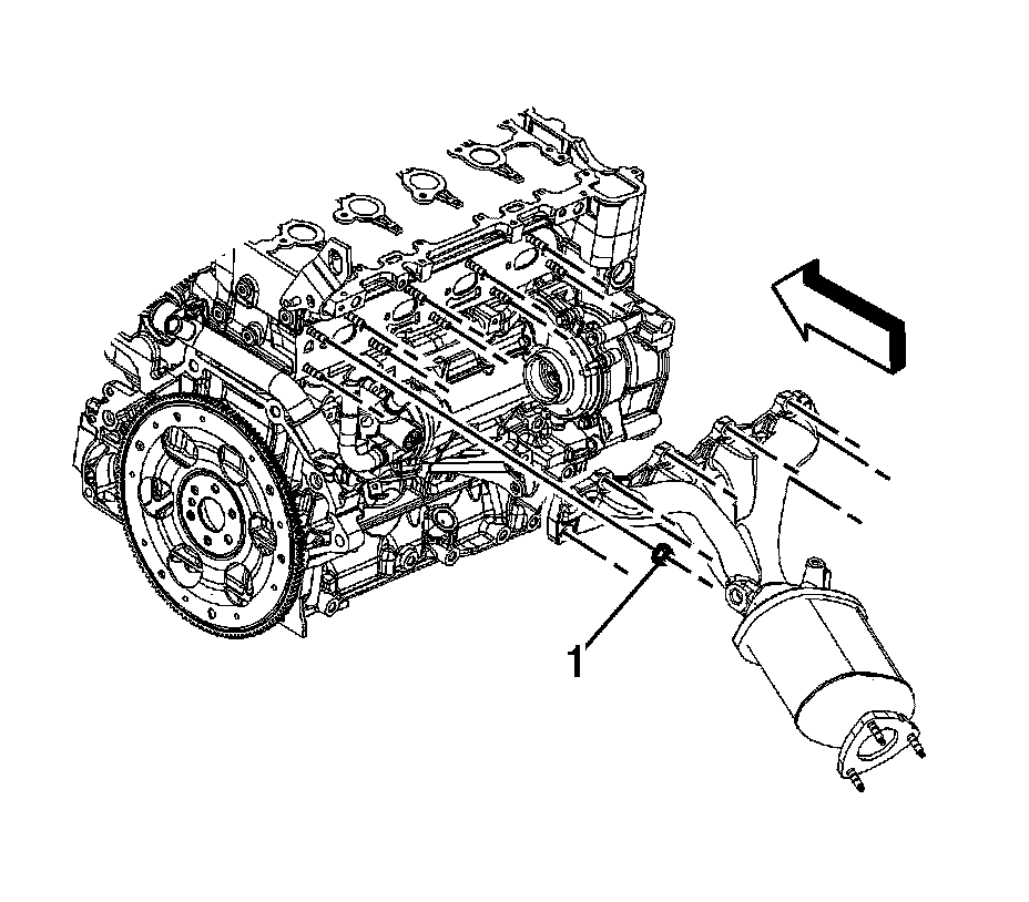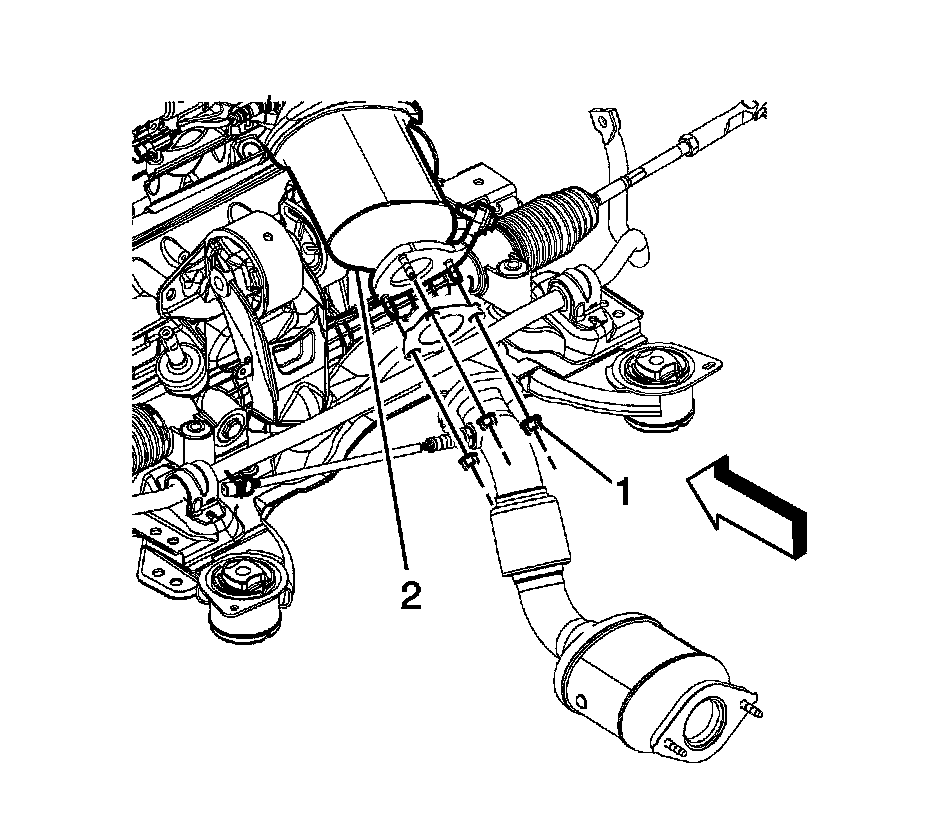 2. Remove the catalytic converter to exhaust manifold nuts (1).