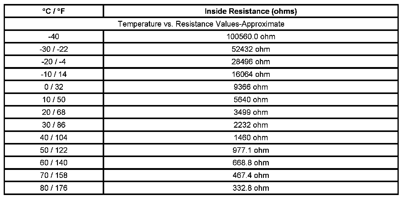 Sensor Resistance Table (Inside Air Temperature Sensor)