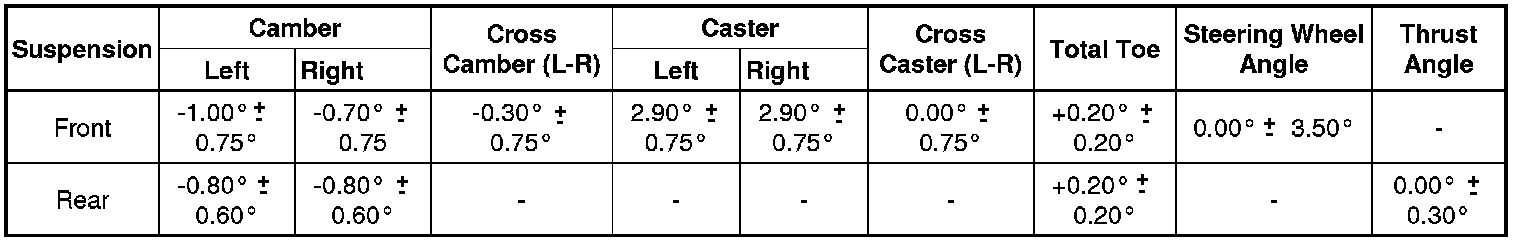 Wheel Alignment Specifications
