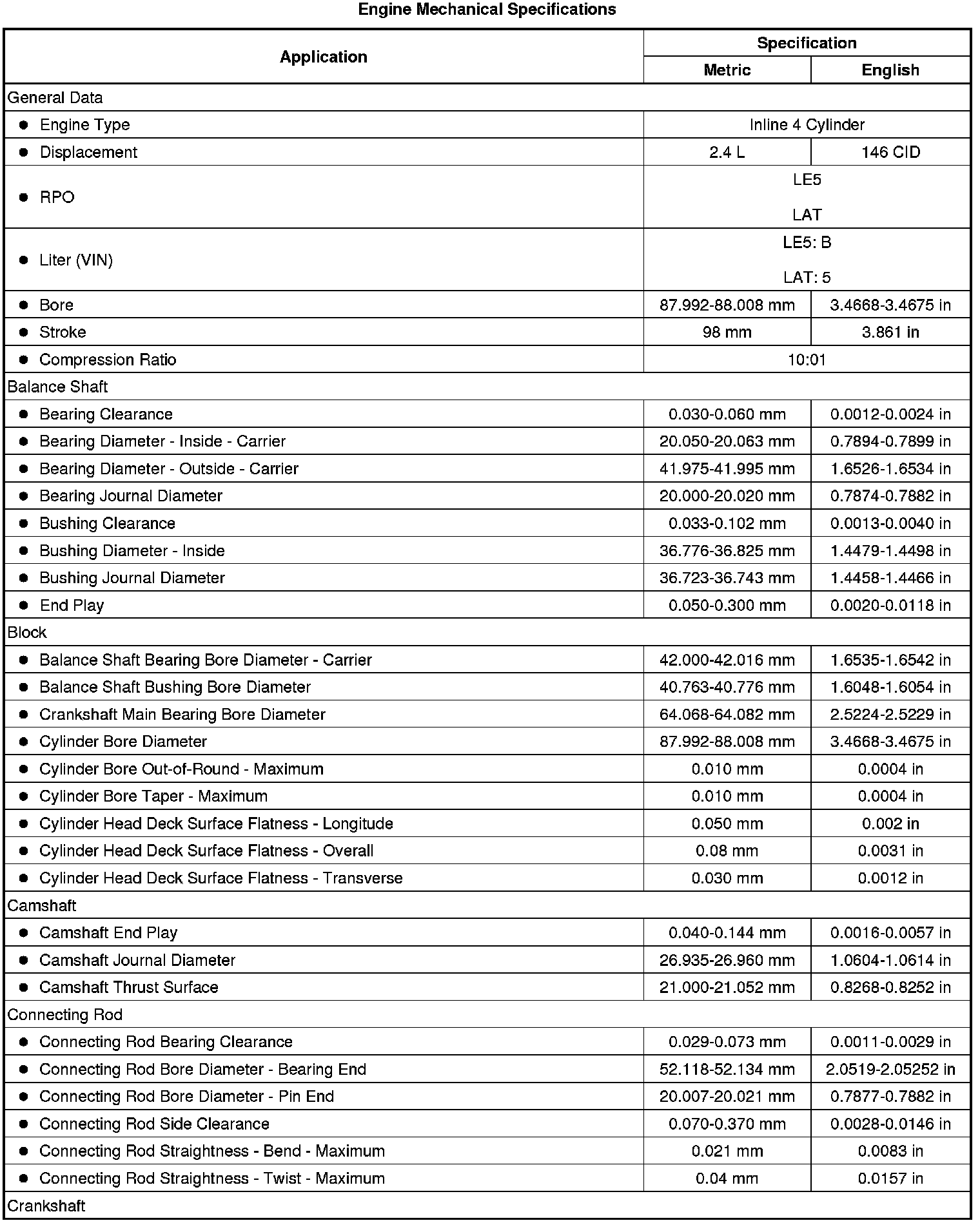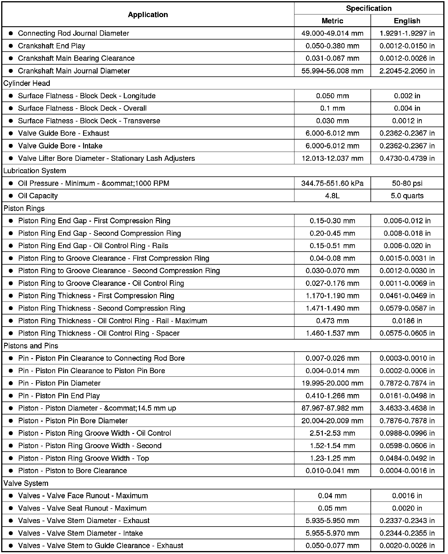 Engine Mechanical Specifications