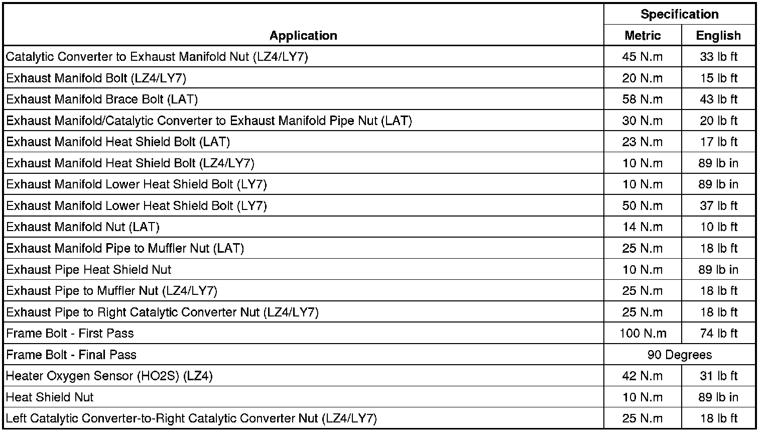 Fastener Tightening Specifications