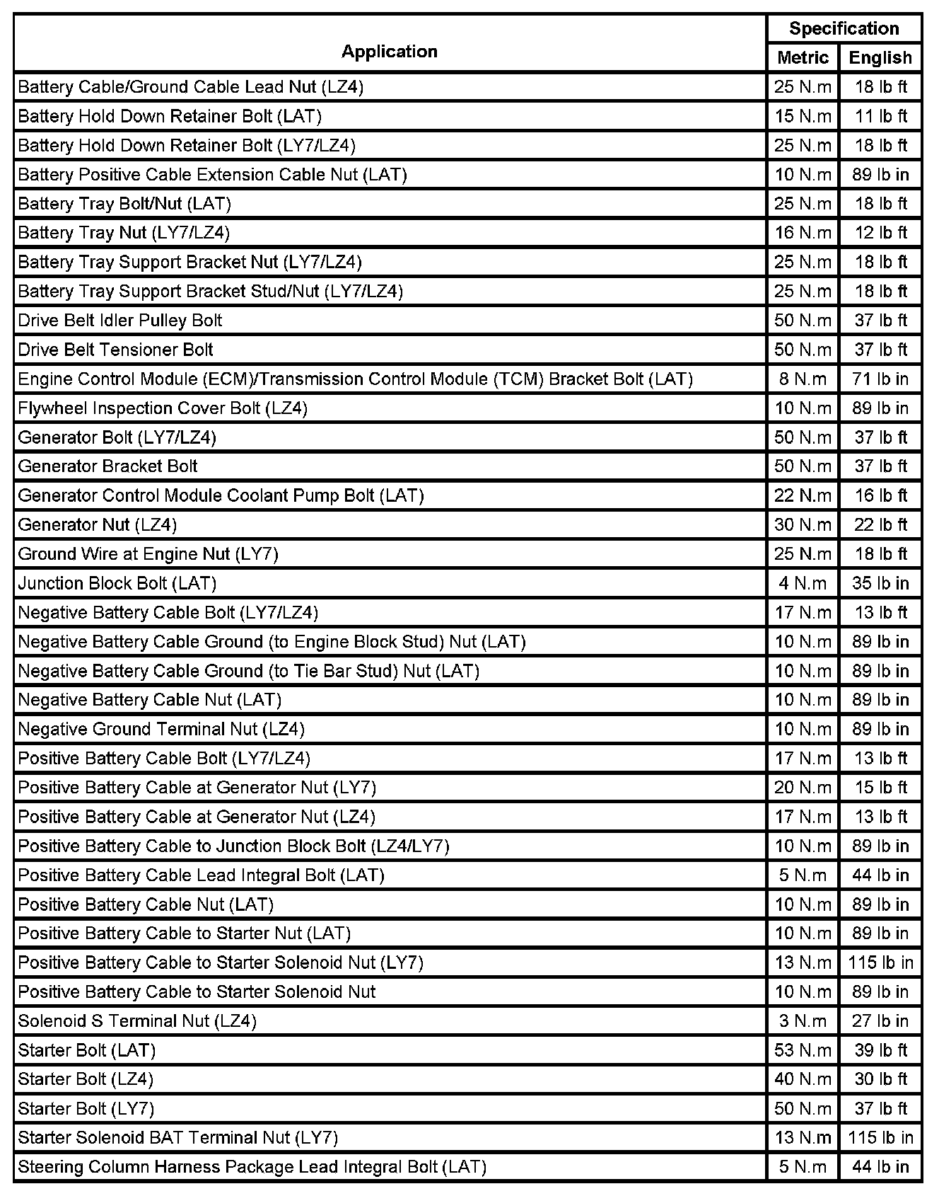 Fastener Tightening Specifications