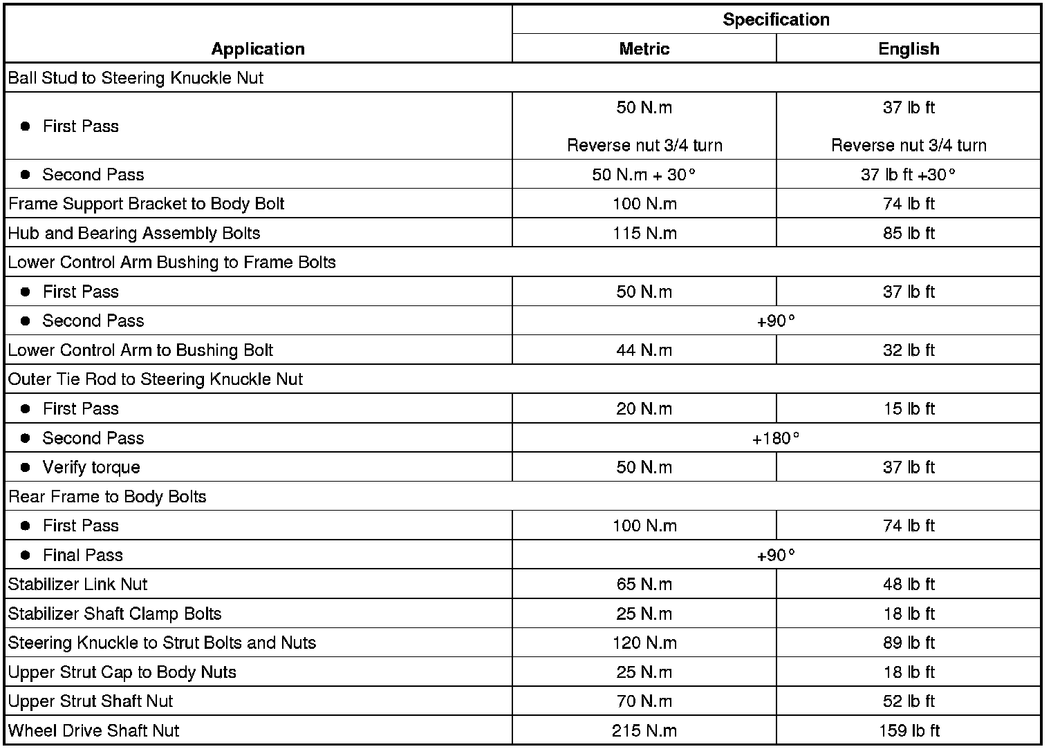 Fastener Tightening Specifications