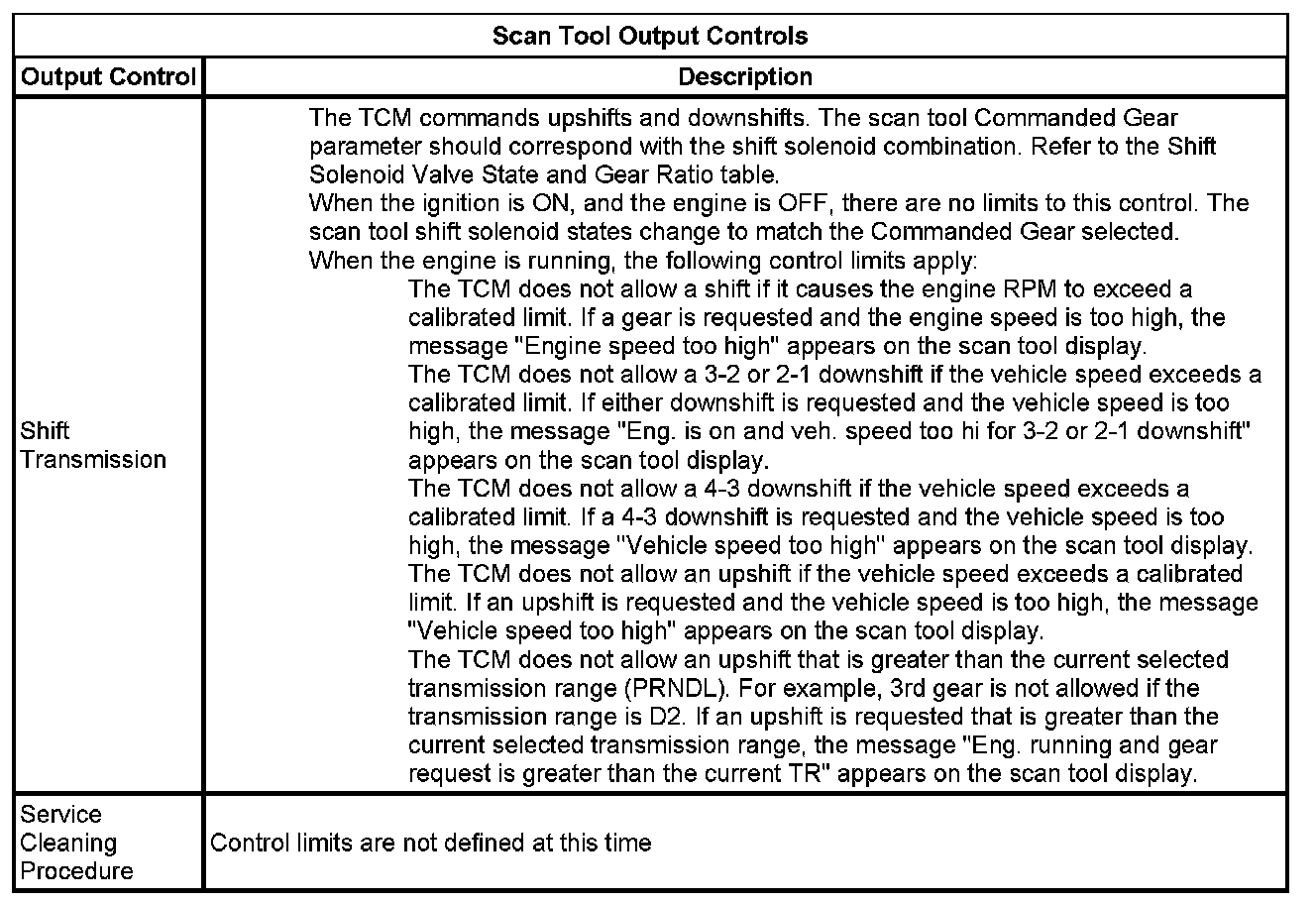 The Transmission Control Module Scan Tool Data List contains all transmission related parameters that are available on the scan tool. The list is arranged in alphabetical order. A given parameter may appear in any one of the data lists, and in some cases may appear more than once, or in more than one data list in order to group certain related parameters together.