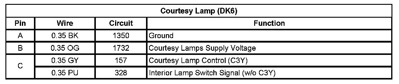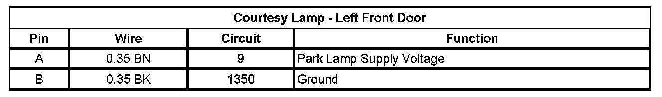 Courtesy Lamp - Left Front Door