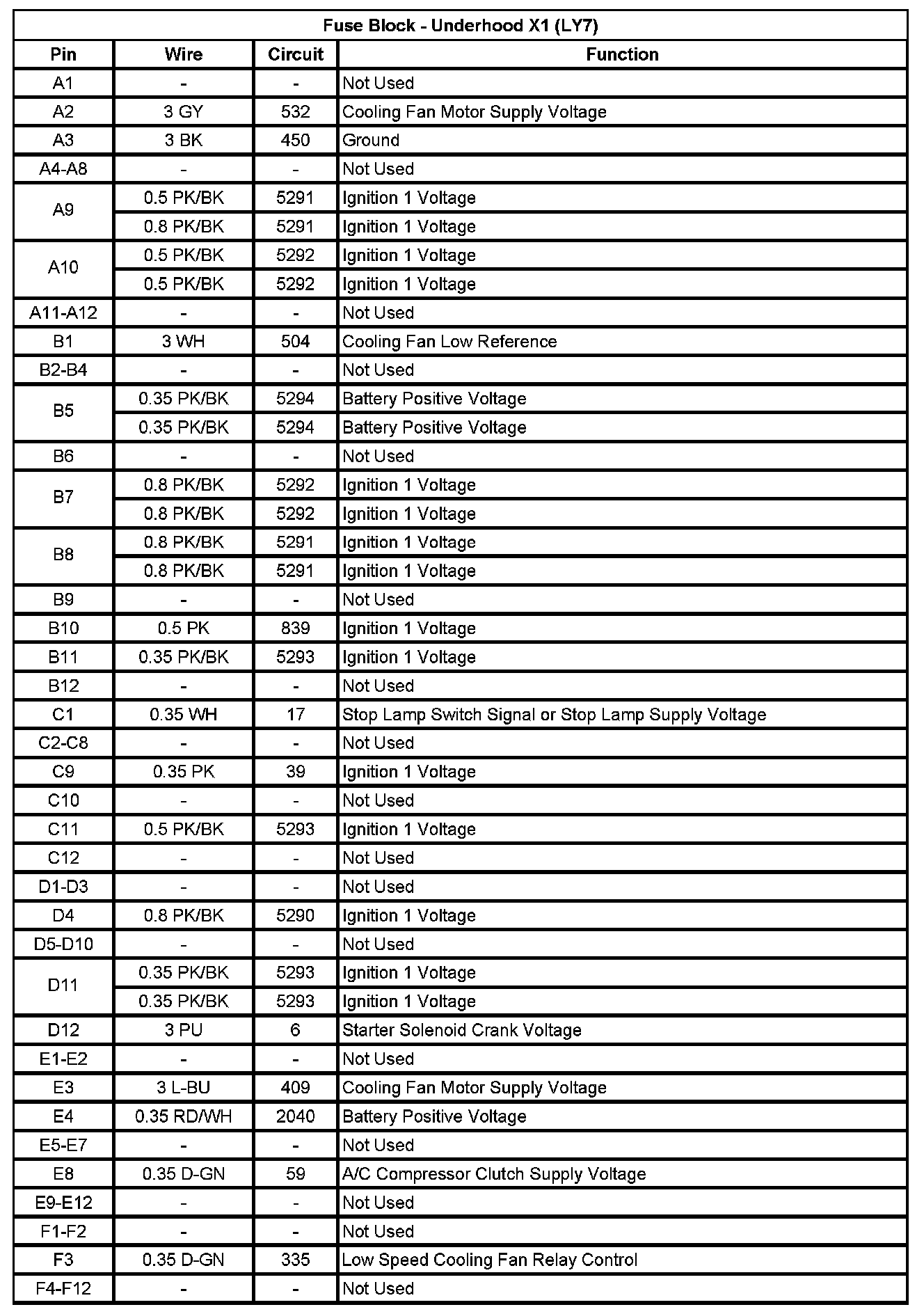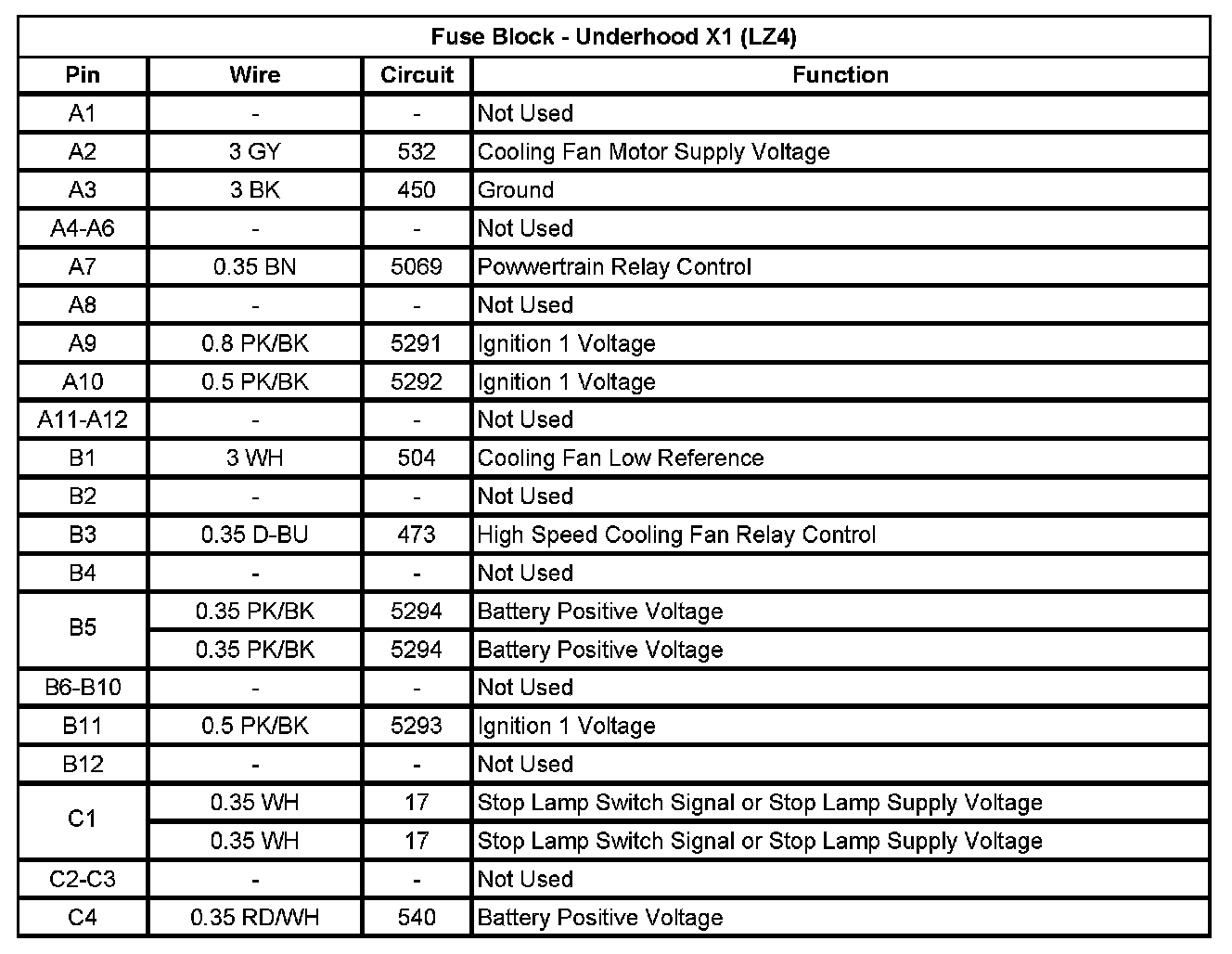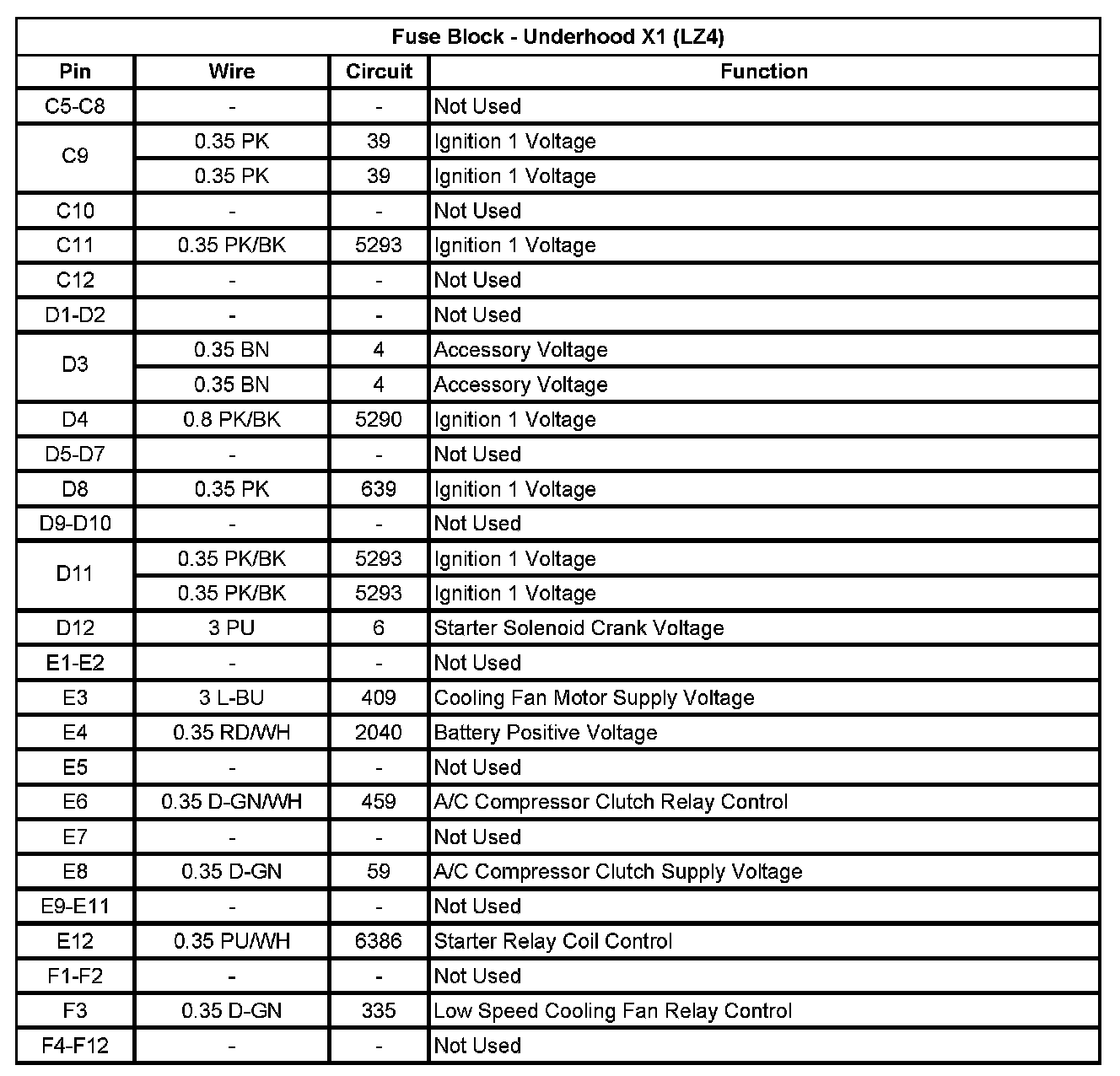 Fuse Block - Underhood X1 (LZ4) (Pin C5 To F12):