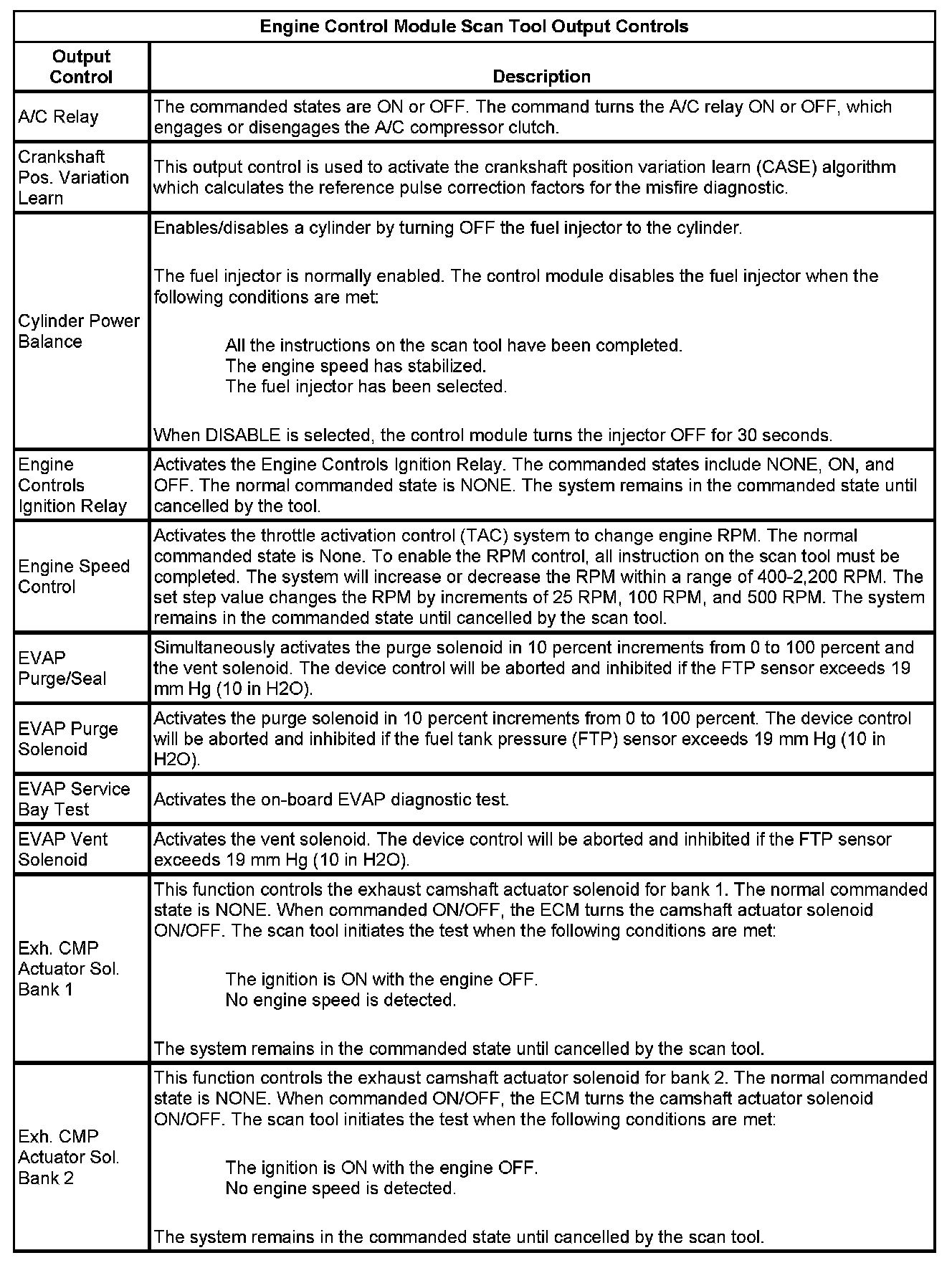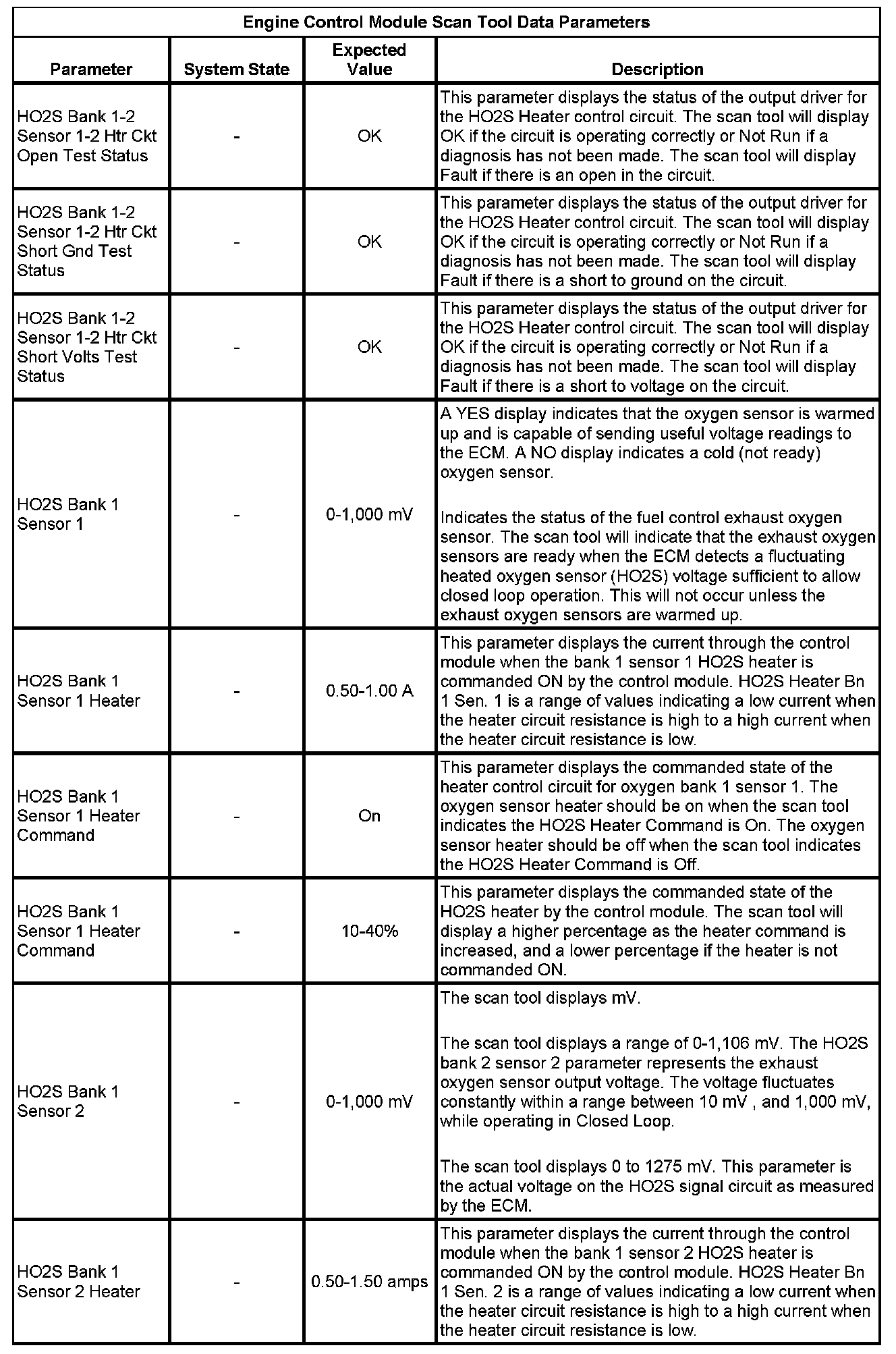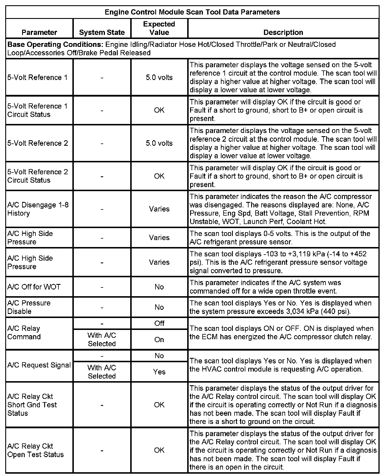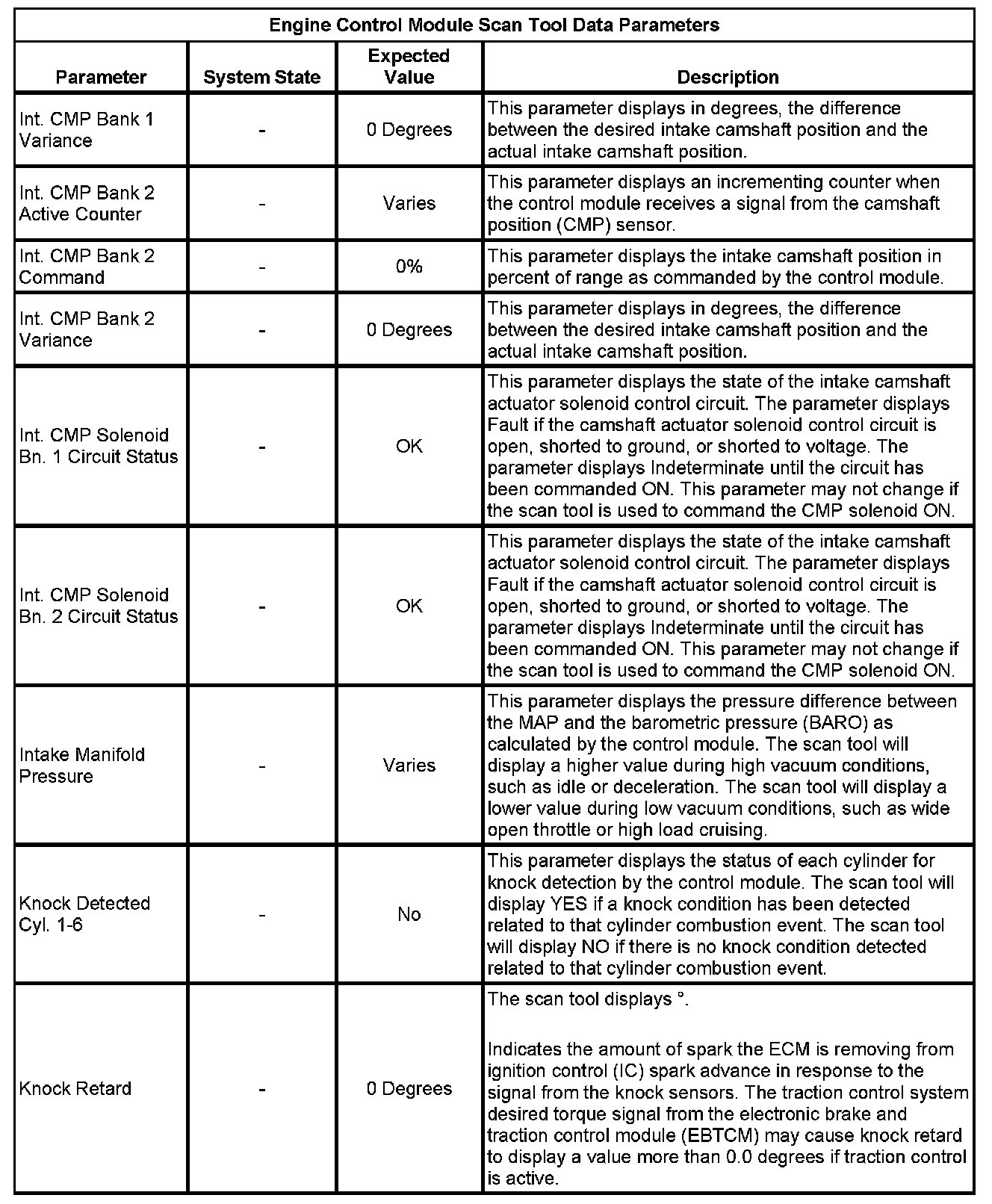 The Engine Control Module Scan Tool Data List contains all engine-related parameters that are available on the scan tool. The list is arranged in alphabetical order. A given parameter may appear in any one of the data lists, and in some cases may appear more than once, or in more than one data list in order to group certain related parameters together.