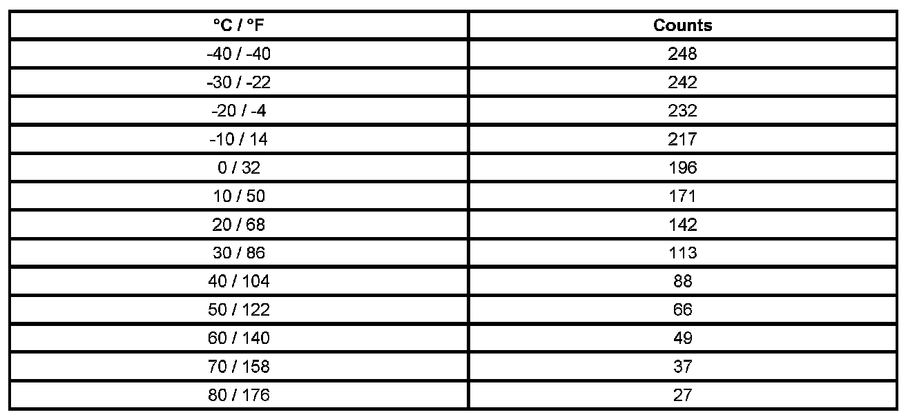Sensor Resistance Table (Duct Temp conversion temp to counts)