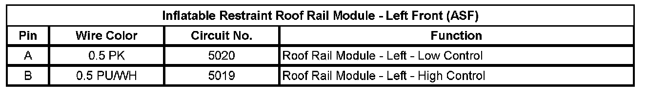 Inflatable Restraint Roof Rail Module - Left Front (ASF)