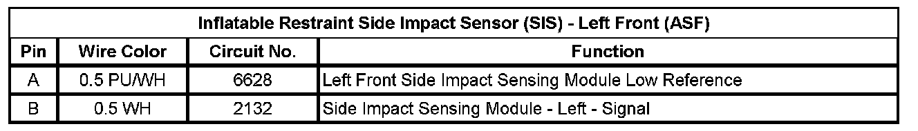 Inflatable Restraint Side Impact Sensor (SIS) - Left Front (ASF)