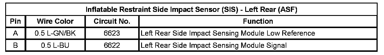 Inflatable Restraint Side Impact Sensor (SIS) - Left Rear (ASF)