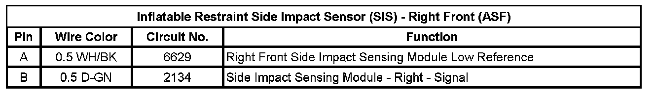 Inflatable Restraint Side Impact Sensor (SIS) - Right Front (ASF)