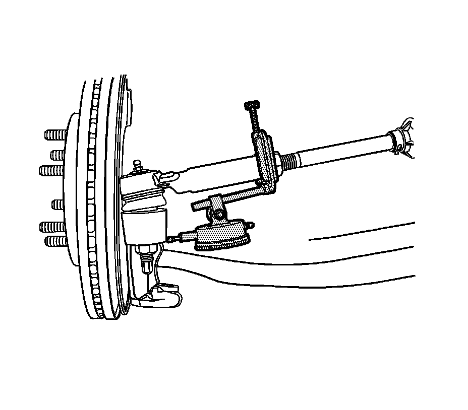 5. Place the dial indicator at zero, pull outward on the tire, and note the amount of movement in the joint.
