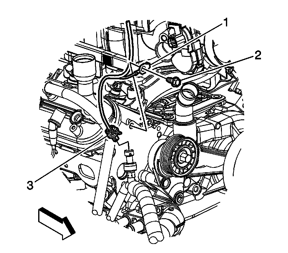 12. Connect the fuel feed pipe (3) to the fuel rail (2). Refer to Metal Collar Quick Connect Fitting Service .