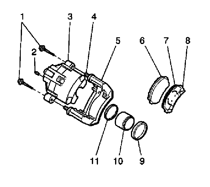 3. Install the disc brake pads (6) and (8) to the disc brake caliper bracket.