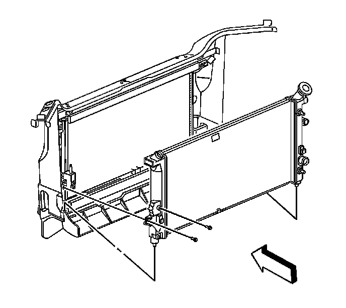 5. Remove the bolt that secures the radiator to the condenser.
