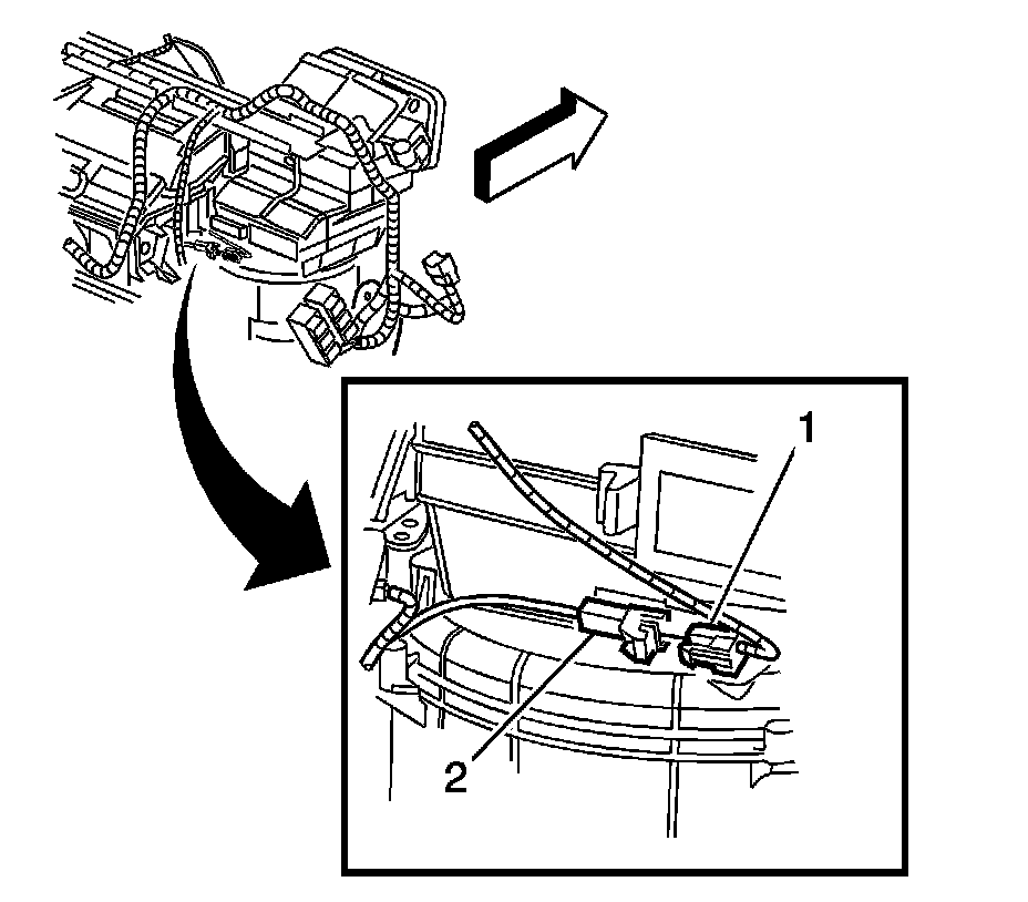 3. Remove the evaporator temperature sensor electrical connector (2) from the case.