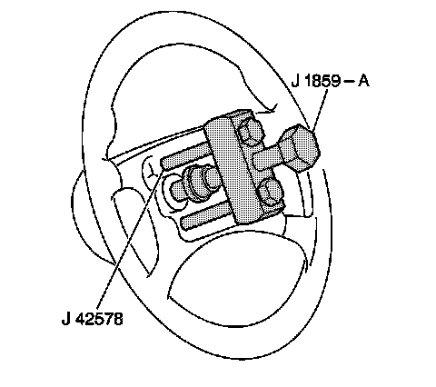 7. Remove J 42578 and J 1859-A from the steering wheel.