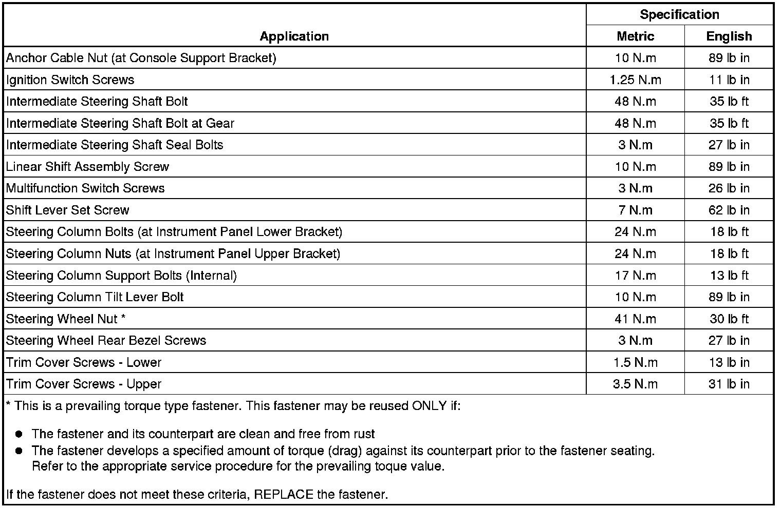Steering Column: Specifications
