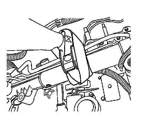 Important: Ensure that the power steering cooler line does not become trapped or damaged during this step.