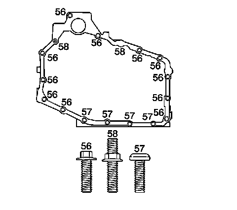 Tighten the bolts (56-58) to 25 N.m (18 lb ft).